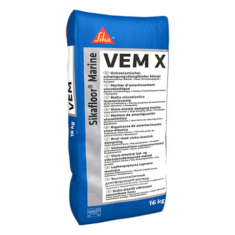 Sikafloor® Marine VEM X is a 1-component light weight visco-elastic mortar where the consitency can be adjusted according to the required application. It is specifically designed to be used in combination with electro-galvanized steel plates to reduce low frequency structure borne noise. Sikafloor® Marine VEM X is tested according to FTP Code system and approved according to the IMO Marine Equipment Directives.