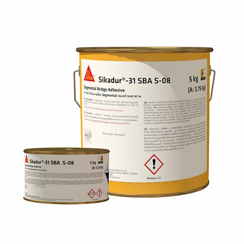 Sikadur®-31 SBA S-08 เป็นกาวอีพ็อกซี่ทิโซทรอปิก 2 ส่วนผสม ใช้สำหรับงานโครงสร้าง ทนต่อความชื้นดีเยี่ยม เหมาะอย่างยิ่งสำหรับ การก่อสร้างสะพานแบบแยกชิ้นส่วนคอนกรีตหล่อสำเร็จ มีความสามารถในการบีบตัวที่ดี มีอัตราความแข็งแรงเริ่มต้นที่สูง แข็งตัวได้โดยไม่หดตัว และผลิตขึ้นตาม มาตรฐานสากลและมาตรฐานภายในประเทศต่างๆ เช่น FIP, ASTM เป็นต้น อุณหภูมิการใช้งานอยู่ที่ +40 °C ถึง +60 °C